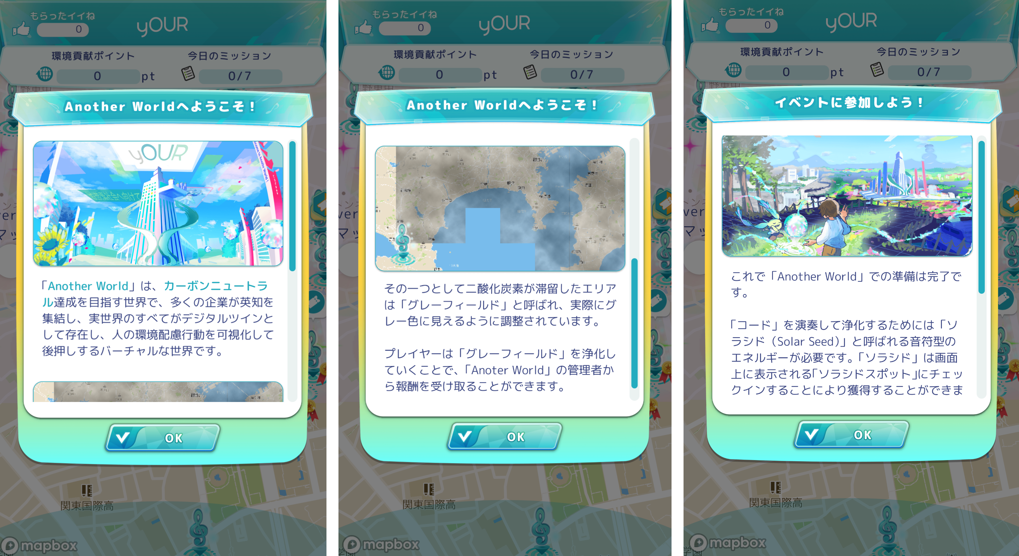 現実世界とリンクしてゲーム上の世界で再現したデジタルツインのミラーワールドを舞台に、現実世界で環境配慮行動を行うことで、灰色に覆われた世界を他のユーザーと協力しながら浄化して色を取り戻すゲームです。