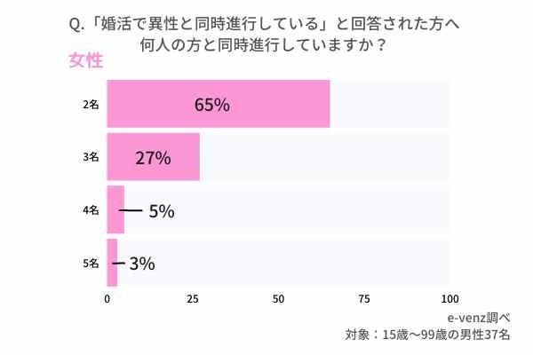 では次に「婚活で異性と同時進行している」と回答された方へ、何人の方と同時進行しているのか調査してみました。