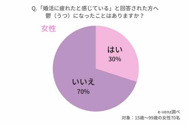 では次に「婚活に疲れたと感じる」回答された方へ、鬱(うつ)になったことがあるか調査してみました。