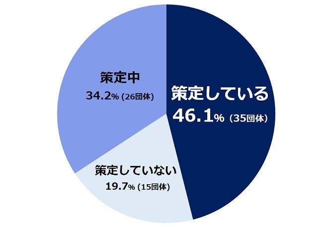 ▶「策定している」団体:46.1%(35団体)・・・前回(2020年度)調査の27.8%より増加