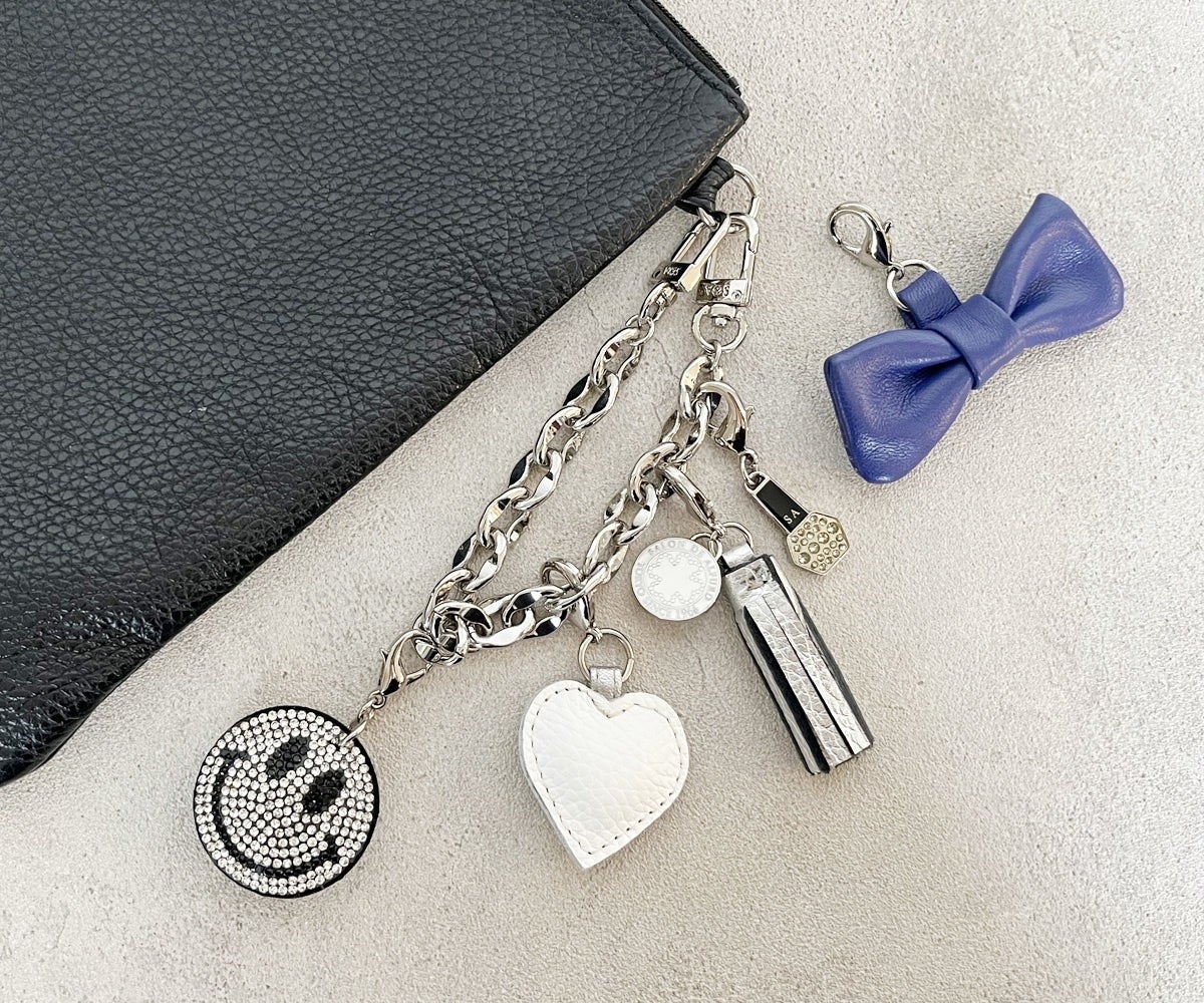 例えば、「トッピング チェーンチャーム リボン&ハート タッセル」は、シルバーのチェーンについているチャームを好みのカラーで選べ、推し活やギフトとしてもぴったりです。一方、「トッピングパーツ」は、よりシンプルでありながらシルバーの煌めきで華やかさを加えることができ、手持ちのバッグをアップデートさせることができます。バッグやポーチだけでなく、キーチェーンや財布など、あらゆる小物に合わせて楽しむことができます。選べて組み合わせ自由自在なデザインのため、複数のチャームを組み合わせることで、さらに個性を引き立てることができます。
