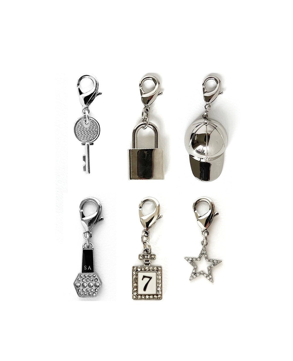 マニキュア・香水瓶・ラインストーンスター・キー・ロックチャーム・キャップのモチーフを、ほんのり甘さを感じさせながらも、子どもっぽくならない大人の可愛さを表現したトッピングパーツ。洗練されたデザインで、ユニセックスに使えるものも。愛用のバッグやポーチ、お財布のファスナーチャームに付けることで、洗練された大人の遊び心を上品に演出してくれます。単品でも楽しめるほか、「トッピング チェーンチャーム リボン&ハート タッセル」との組み合わせで、自在にカスタマイズしてオリジナルなコーディネートが可能です。