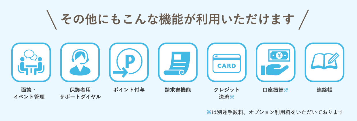 基本機能以外にも、面談・イベント管理、請求書発行機能など、さまざまな機能を順次リリース予定です。