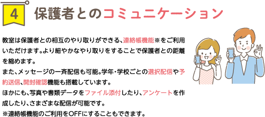 より細やかなやり取りをすることで保護者との距離を縮めます。