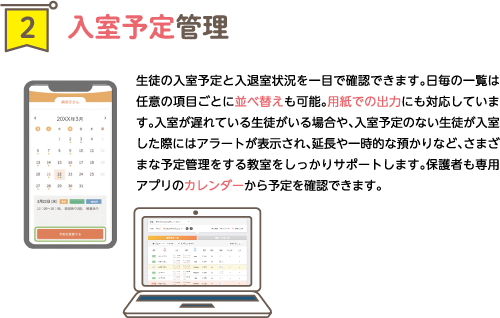 延長や一時的な預かりなど、さまざまな予定管理をする教室をしっかりサポートします。