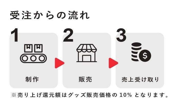 グッズ制作・販売を行う際に発生する面倒な手続きを、制作から売り上げの受け取りまでスムーズにサポートし、最大限に手続きを省略することができるサービスをリリースします。