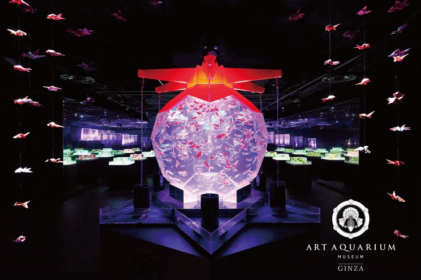 アクアリウム美術館 GINZAの館内作品のなかで一番大きな水槽作品である“オリガミリウム”の空間を演出しています。