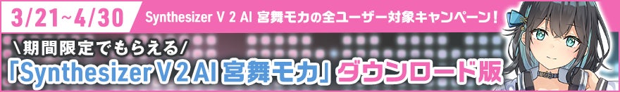 さらに、すでにSynthesizer V AI 宮舞モカをお持ちのお客様を対象に、期間限定で「Synthesizer V 2 AI 宮舞モカ」ダウンロード版が無料でもらえるキャンペーンを開催致します。