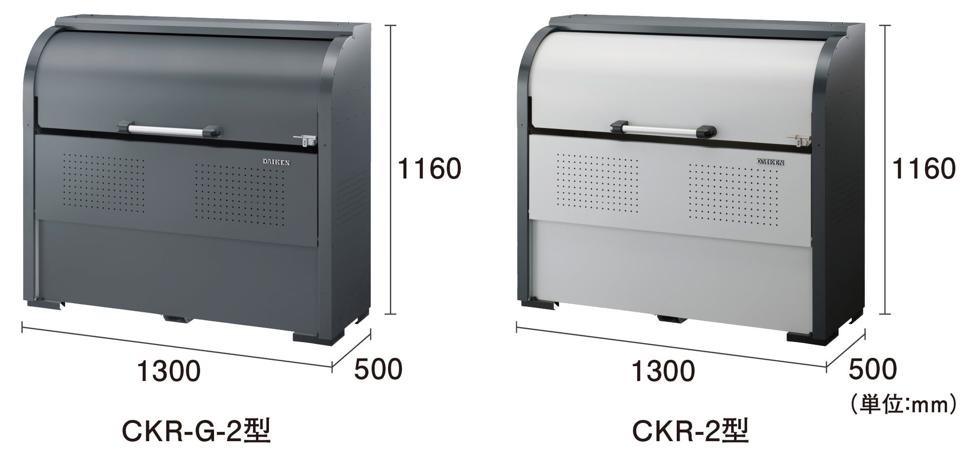 今回発売する「奥行500㎜サイズ」は、建物の入口付近や道路に面した場所など狭小地への設置に最適。カラーバリエーションは2色あり、「CKR-G-2型」は全体がシックで高級感のあるダークグレーカラー、「CKR-2型」は前面のホワイトと側面・上部がダークグレーのツートンカラーが特長です。材質は、耐久性に優れた高耐食溶融めっき鋼板製。開閉音が静かになるロータリーダンパーを標準搭載し、ダンパー非搭載時と比べた場合に、扉の開閉音を約25%低減します。奥行500㎜サイズの追加により、「CKR-G-2型」は計8サイズ、「CKR-2型」は計12サイズのラインアップとなりました。