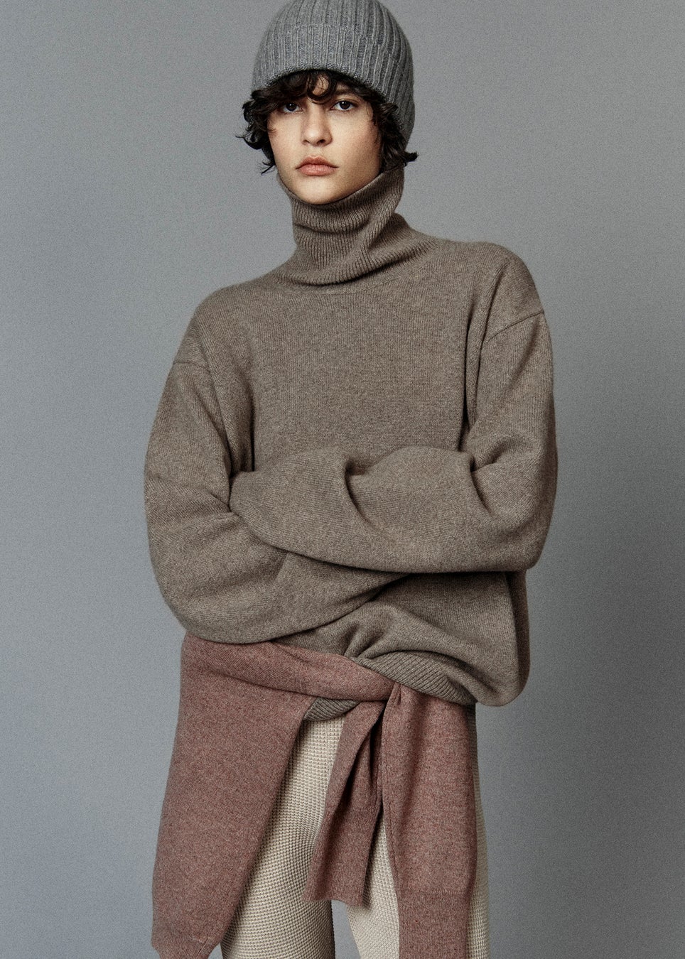〈ロロ〉カプセルコレクションの主役はセーター4 型(ポロ、タートルネック、ラウンドネック、V ネック)とストール、帽子で、クリーンで現代的なライン、そして染色されていないバージンカシミヤと、再利用する繊維のカラー(グレインブラウン、ピュアデューン、レインクラウド、ダスクスカイ、レッドサンド)をミックスした独自のメランジュのカラーパレットが特徴です。このほか、柔軟で滑りにくいテクニカルソールとカシミヤのアッパーを備えた、わずか 360g の軽量スニーカー《360 フレクシーウォーク》が揃います。