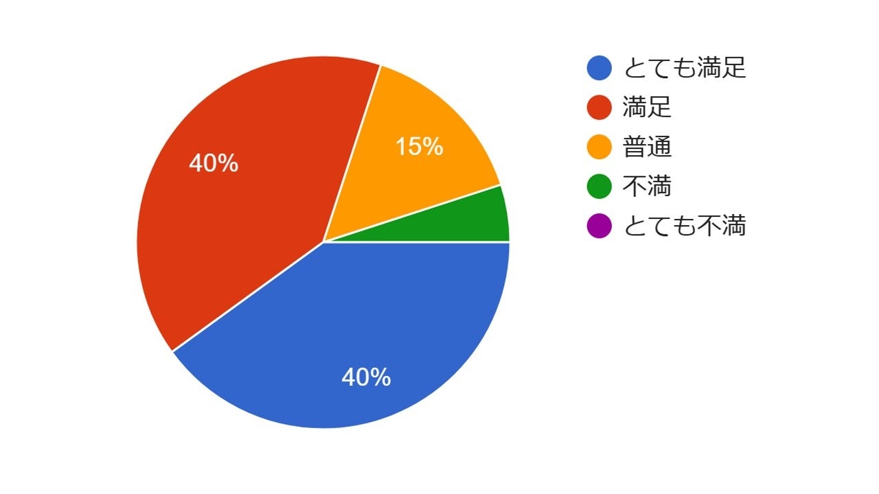 受検者の80%が「満足度が高い(とても満足 40%・満足 40%)」と回答。