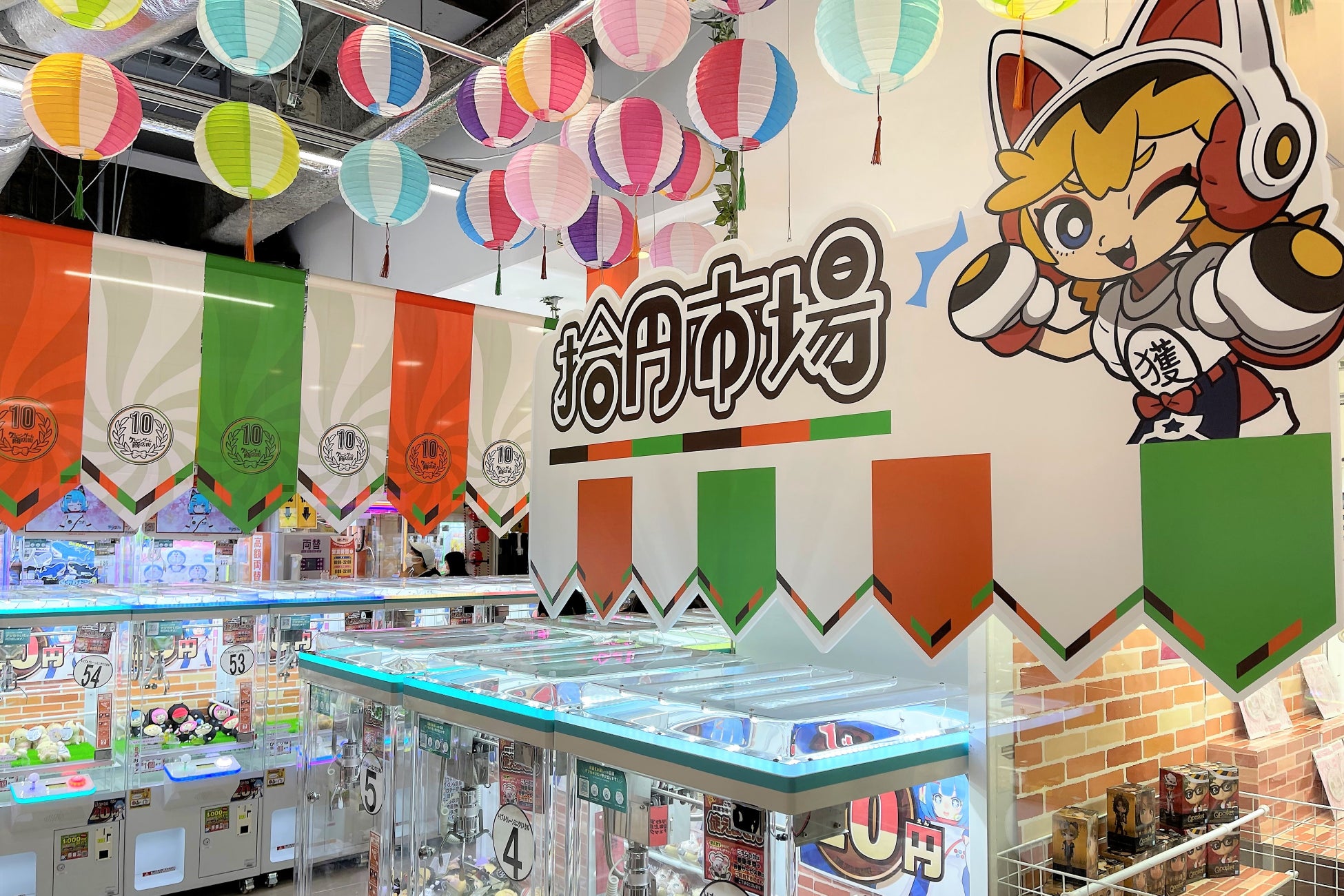 にぎわう商店街をイメージした「クレーンゲーム商店街」の壱の推しは「紅白爆獲合戦」!天下の大泥棒 石川五右衛門がセンターで差配する、初心者マークがついたクレーンゲームは獲得率急上昇の要チェックコーナー!弐の推しはひときわ目を引く10本アームのクレーンゲーム、その名も「十手観音」。このマシンはあそびタウンだけの限定マシン。ぜひ一度ご体験ください!そして参の推しは「拾円市場」お財布にやさしい10円コーナー!クレーンゲームの練習にもぴったり!お子様と一緒に10円クレーンゲーム体験はいかがでしょうか? (※写真は大阪道頓堀あそびタウン・横浜あそびタウン)