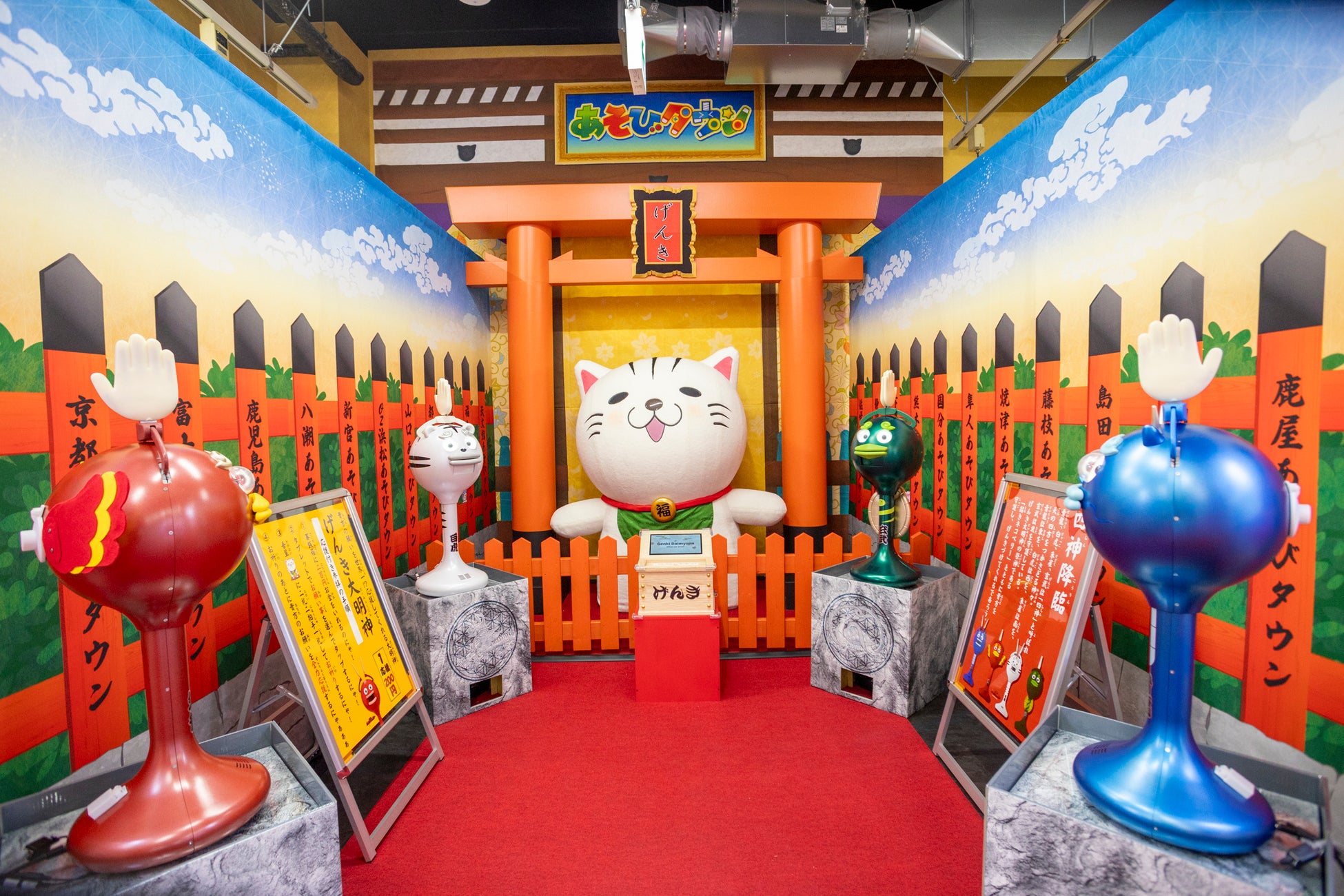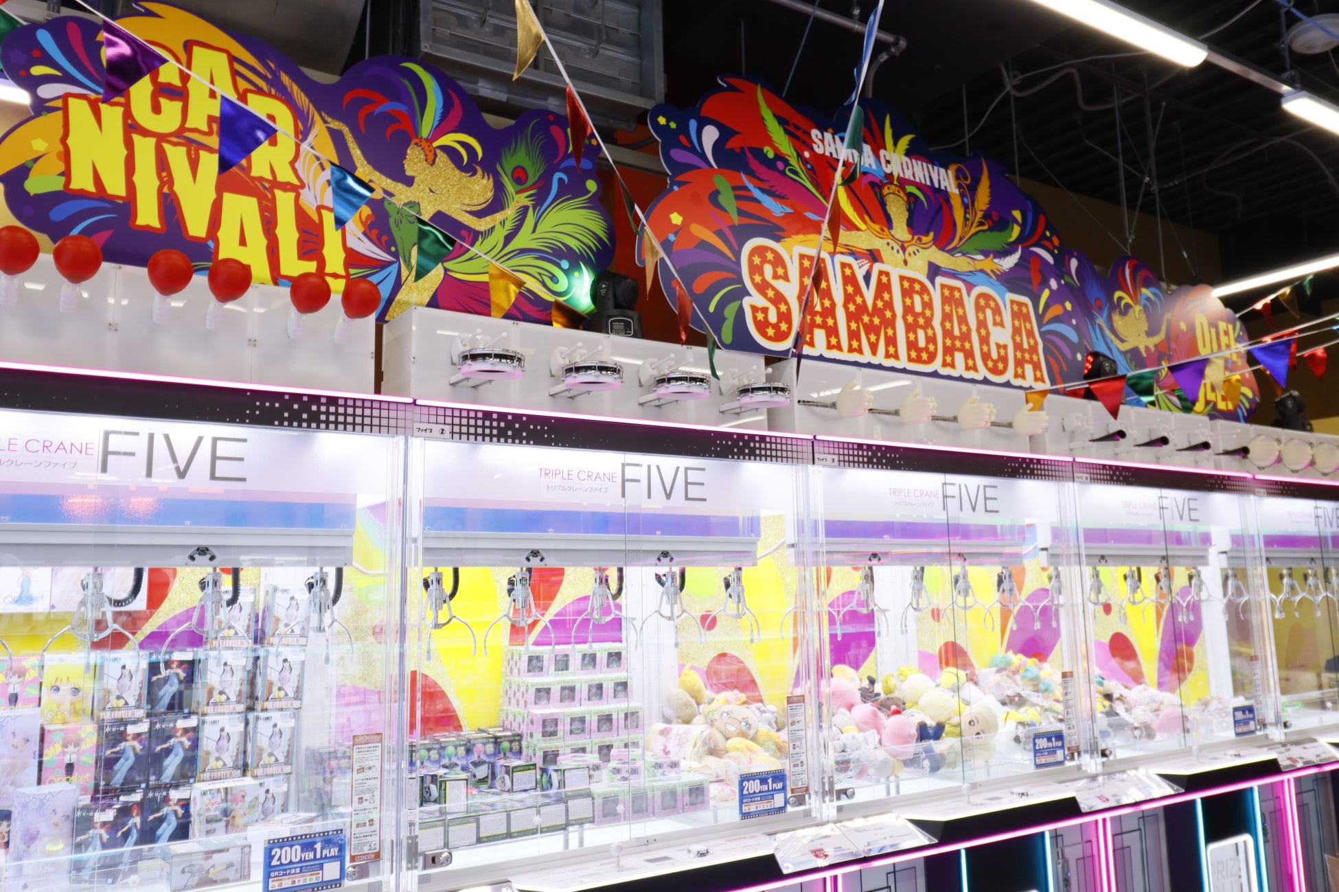 横浜、大阪道頓堀、京都の3店舗にしかないスペシャルコーナー「げんき大明神」。京都は四神に扮した拍手ロボットが皆様の開運を応援。玄武、青龍、白虎、朱雀にお客様のお名前を入力いただくと、お客様のお名前を入れて全力で応援します!さらに、海外のお祭りモチーフに、お客様を盛り上げまくる「サンバカーニバル」は、ど真ん中にサンバクラッピーが登場して、全力で盛り上げます!ぜひお見逃しなく!(※写真はサープラ大阪道頓堀あそびタウン)