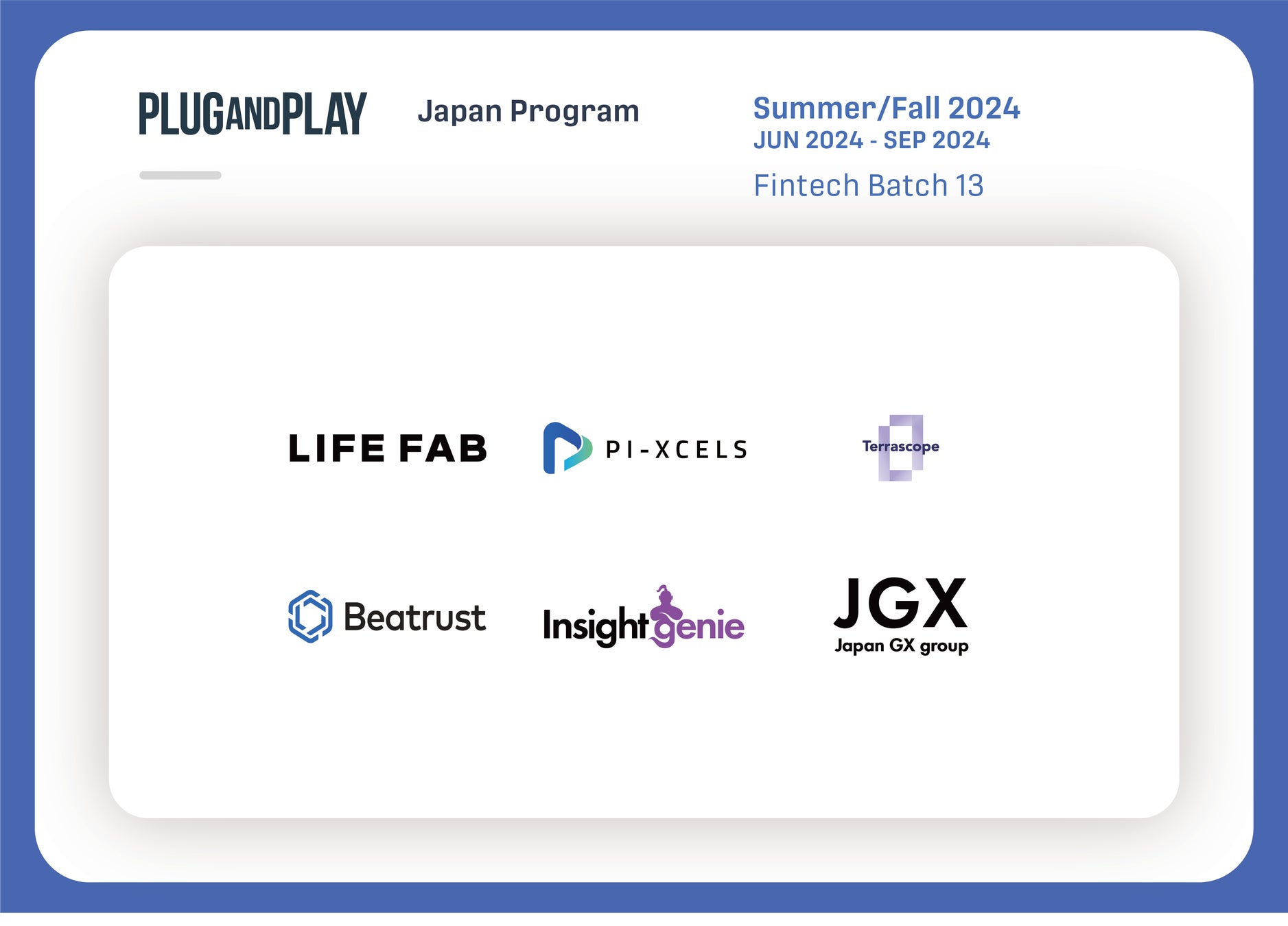 *Batch とは、Plug and Play Japan において、アクセラレータープログラム期間を表す単位。