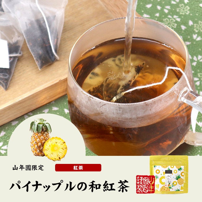 巣鴨のお茶屋さん山年園より、静岡の緑茶を使用したパイナップルの和紅茶の販売を開始いたしました。深く豊かな茶葉の味わいに、パイナップルがほんのり感じられる一品です。