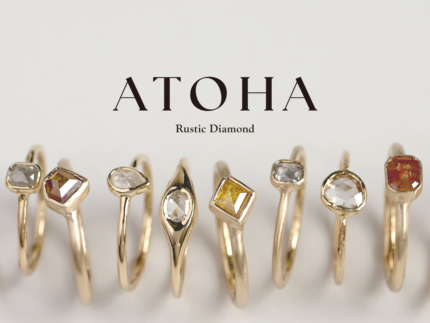 ATOHAは、ひとつひとつ異なる魅力を持つ 「ラスティックダイヤモンド」で仕立てる、 一点物のジュエリーブランドです。