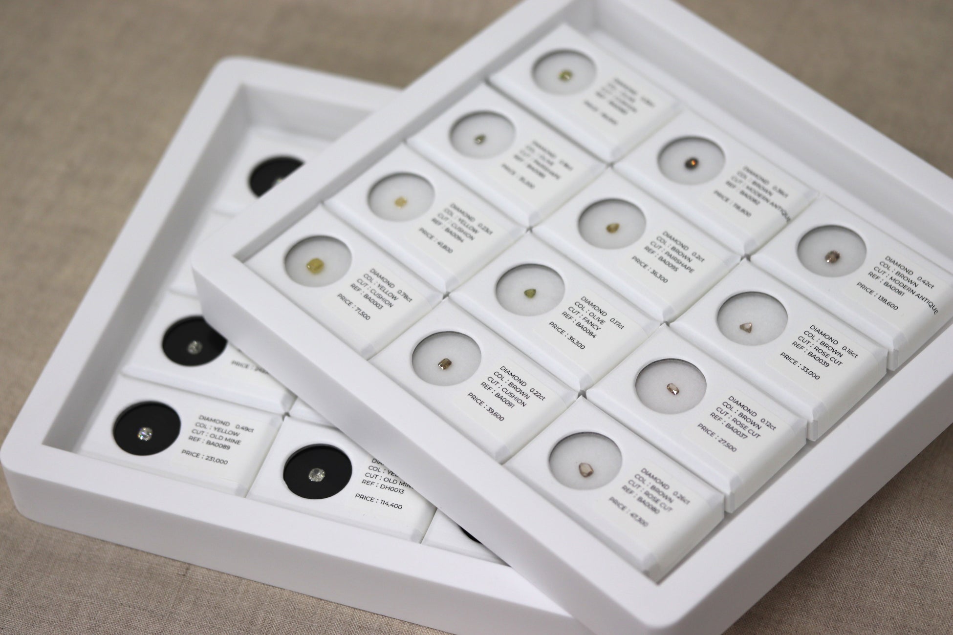 ルースケースには、ひとつひとつダイヤのカラー、カット等の情報をラベリングし、自分だけのダイヤモンドを見つけだす高揚感をお楽しみいただけます。