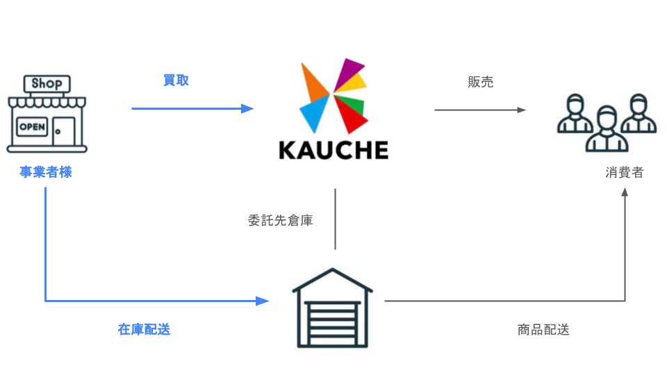 また買取後、事業者はカウシェと提携する物流委託先の倉庫に在庫を配送し販売するため、倉庫スペースを確保したい・倉庫費用を抑えたい事業者にとってもメリットがあります。