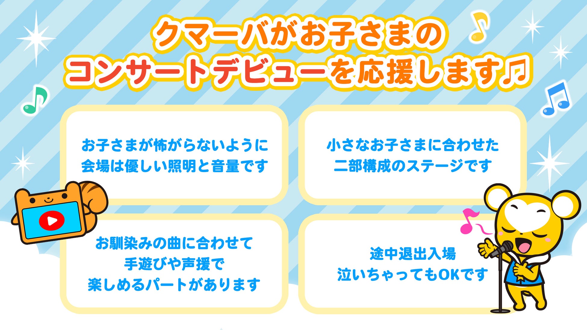 毎年大盛況のファミリーイベント「クマーバチャンネル にこにこクマイルコンサート」今回は関東と関西で3公演の開催が決定しました!