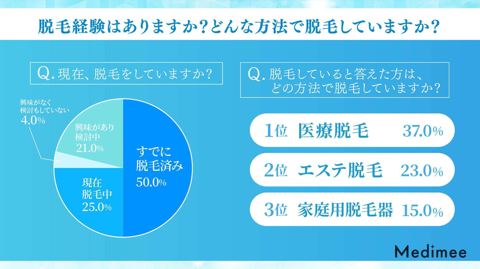 【脱毛経験者の約4割が医療脱毛を選択】10代〜50代の男女100人に脱毛に関する意識調査を実施!