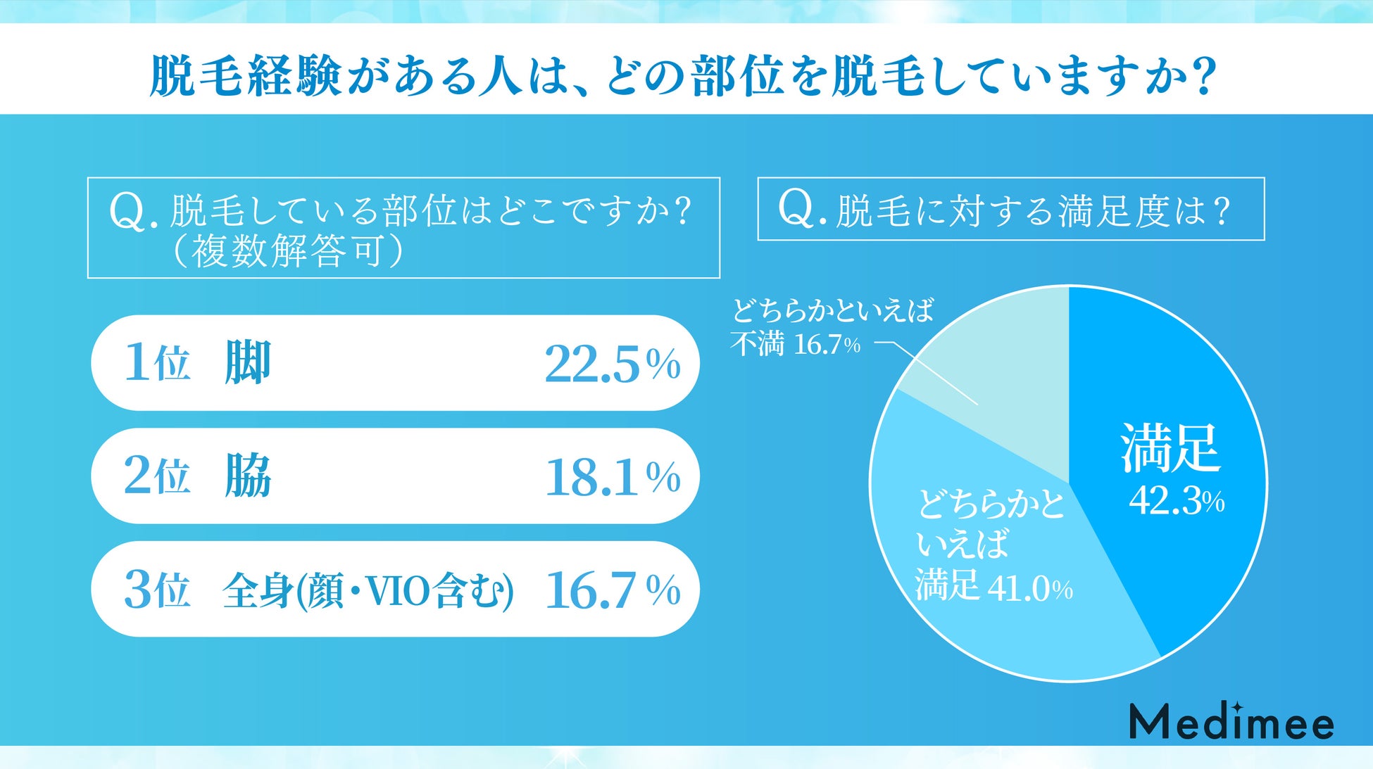 また、アンケート結果からも脱毛経験者のうち8割以上の人が、脱毛に対して満足していることが分かりました。