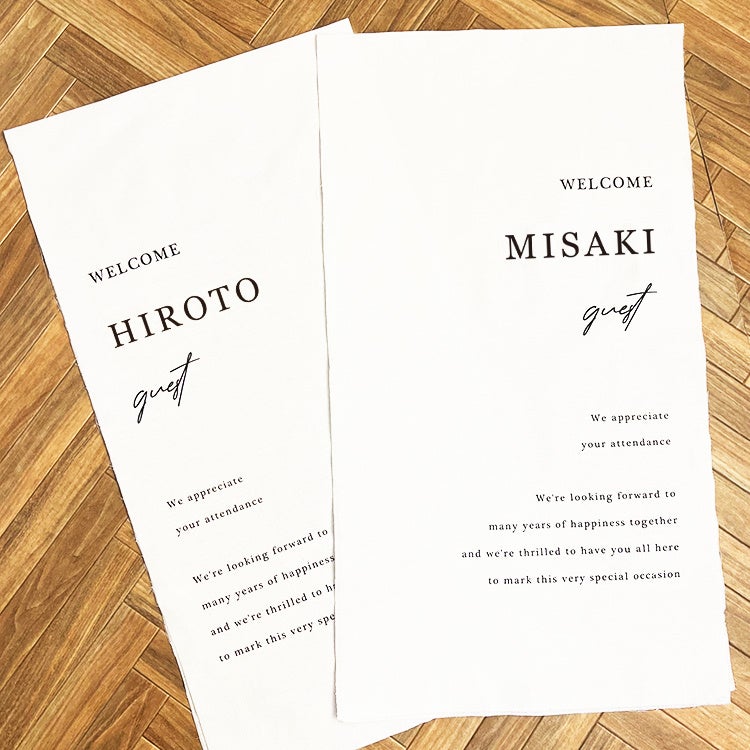 抜群の存在感でゲストの目を惹くタペストリーはお二人の名前が印字されるので世界で一つの特別なタペストリーとなります。