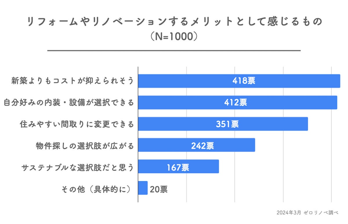 リフォーム・リノベーションのメリットとして感じることを聞いたところ、以下の結果になりました。