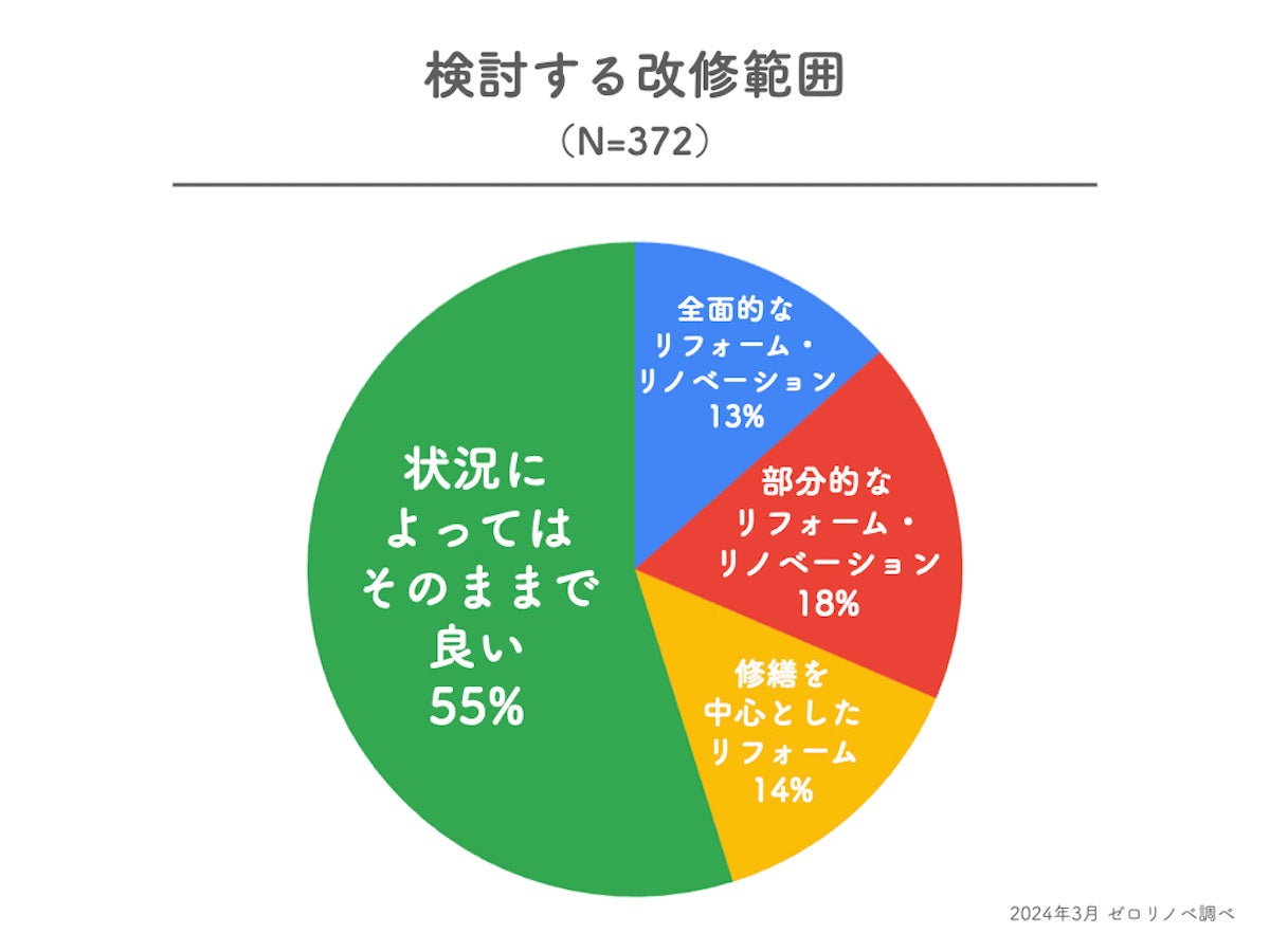 ・設備交換や壁紙の張替えなど、修繕を中心としたリフォーム…14%