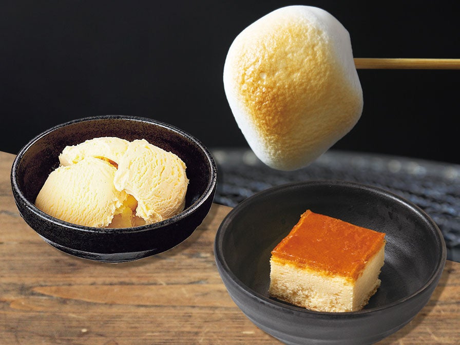 その他にも、炙って楽しい『焼きマシュマロ』、あったかお芋にひんやりアイスの相性がバッチリ『いもっ娘』、そのままでも少し焼いても美味しい『ニューヨークチーズケーキ』などデザートメニューも豊富にご用意しているので、この機会にぜひお楽しみください。こちらは大感激コース以上のメニューに含まれております。