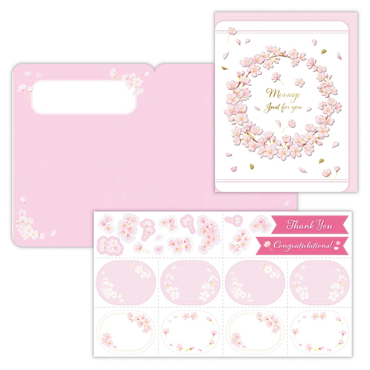 色紙代わりに活用できる寄せ書きカードに、桜のデザインが仲間入り。色紙ほど大きくはなく、6~8名の小グループで寄せ書きをする際におすすめのサイズ感です。手軽にデコレーションができるアレンジシール付き。