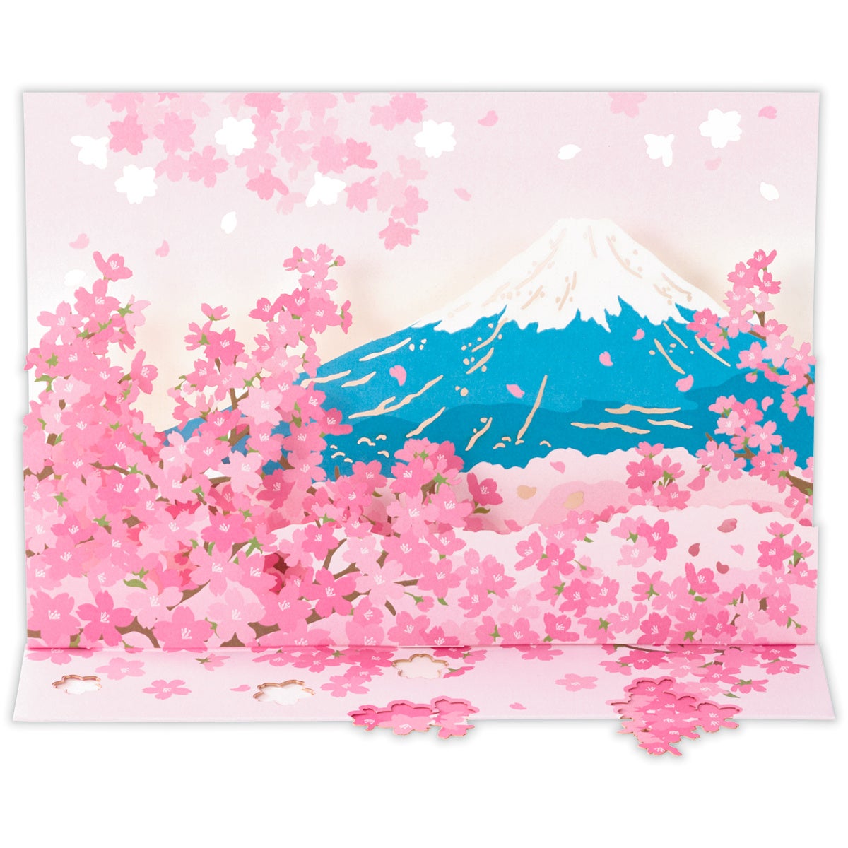 日本の象徴・桜と富士山の名景が描かれた、心華やぐ春柄立体カード。桜×富士山の組み合わせは海外でも人気が高く、外国の方や海外に住むご友人への贈り物やお土産にもおすすめです。