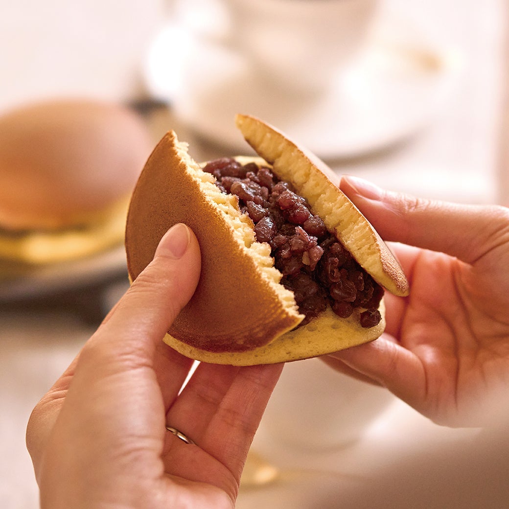 職人がきつね色のふっくらとした皮に新小豆で作る餡を挟んでご提供いたします。