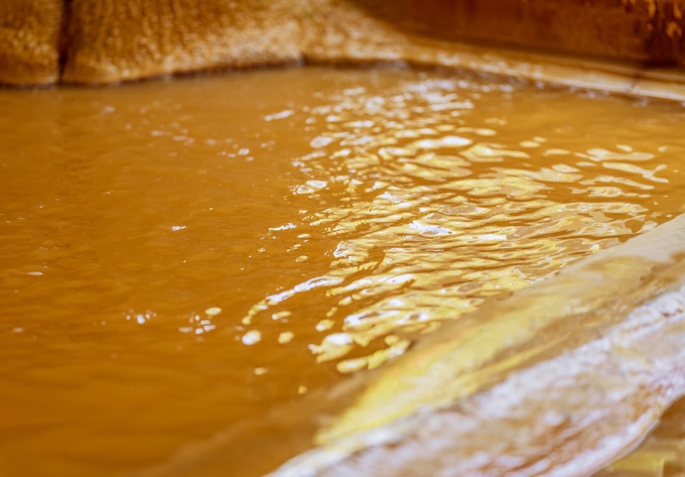 花山温泉の一番風呂には、湯の花がまるで氷が張ったような膜を張ります。この膜を割りながらバリバリ音を立てて入浴するのは、ほかの温泉では味わうことのできない醍醐味です。