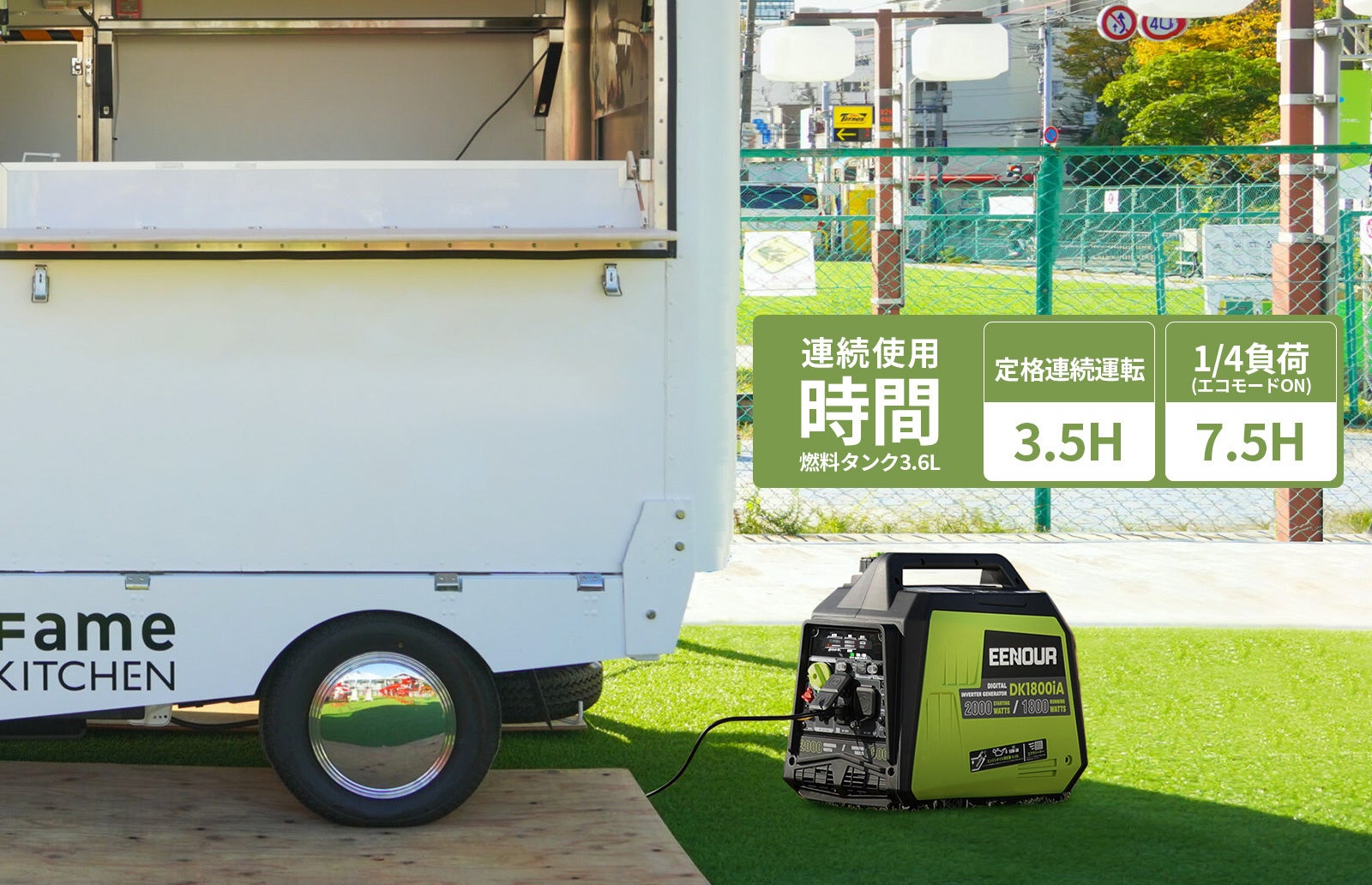 連続運転時間 約7.5h(25%負荷)~3.5h(100%負荷)