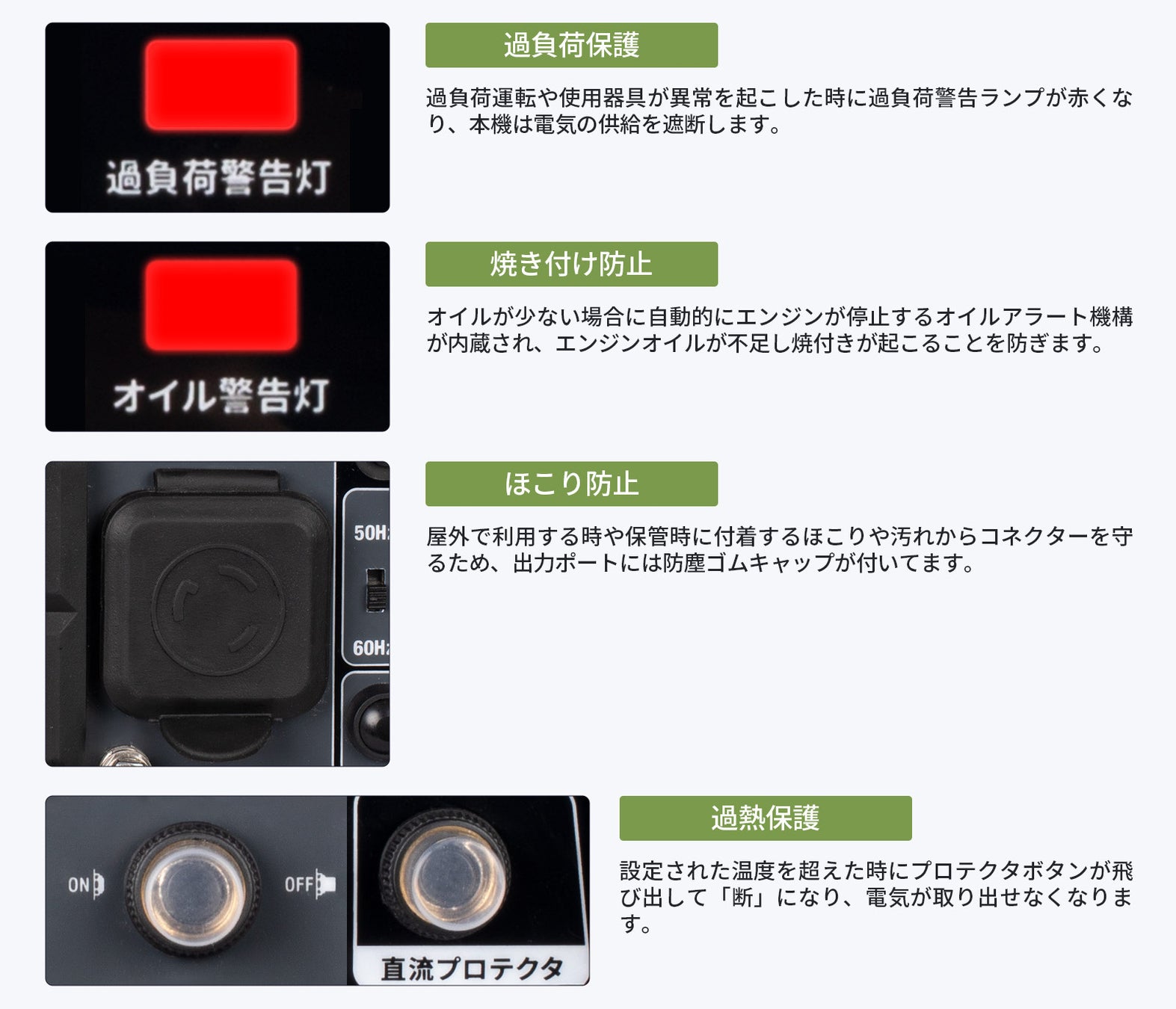 「重くて持ち運びが大変」、「リコイルでエンジンが上手くかけられない」、「燃料残量をわかりにくい」などのご意見をいただき、更に便利になるDK新シリーズ(DK1800iA/DK3500i/DK3500iEDF)も開発致しました。マルチメーターで運転状況確認、セルスターターで簡単にエンジン起動、キャスター付きでラクラク移動が可能な新型発電機となります。