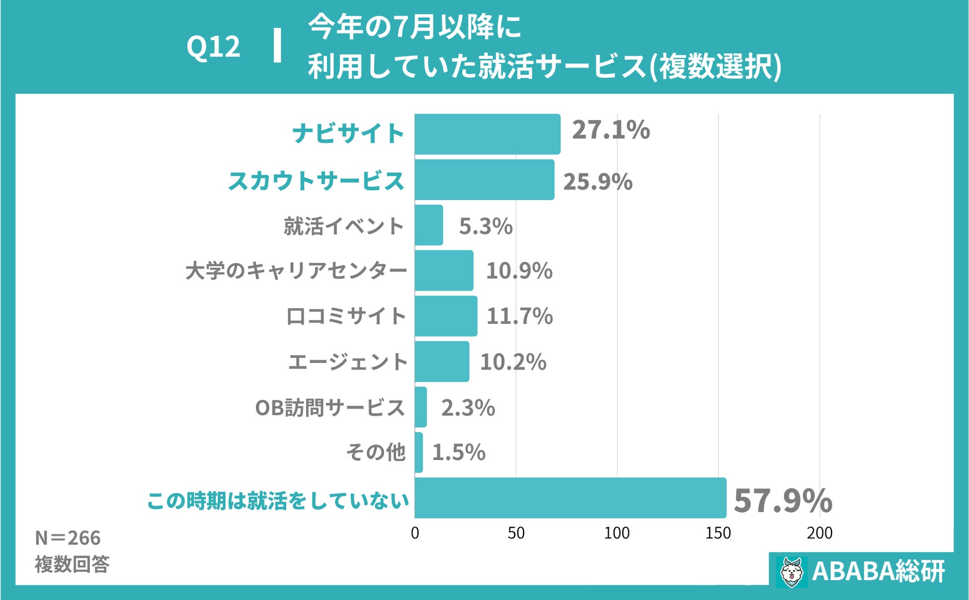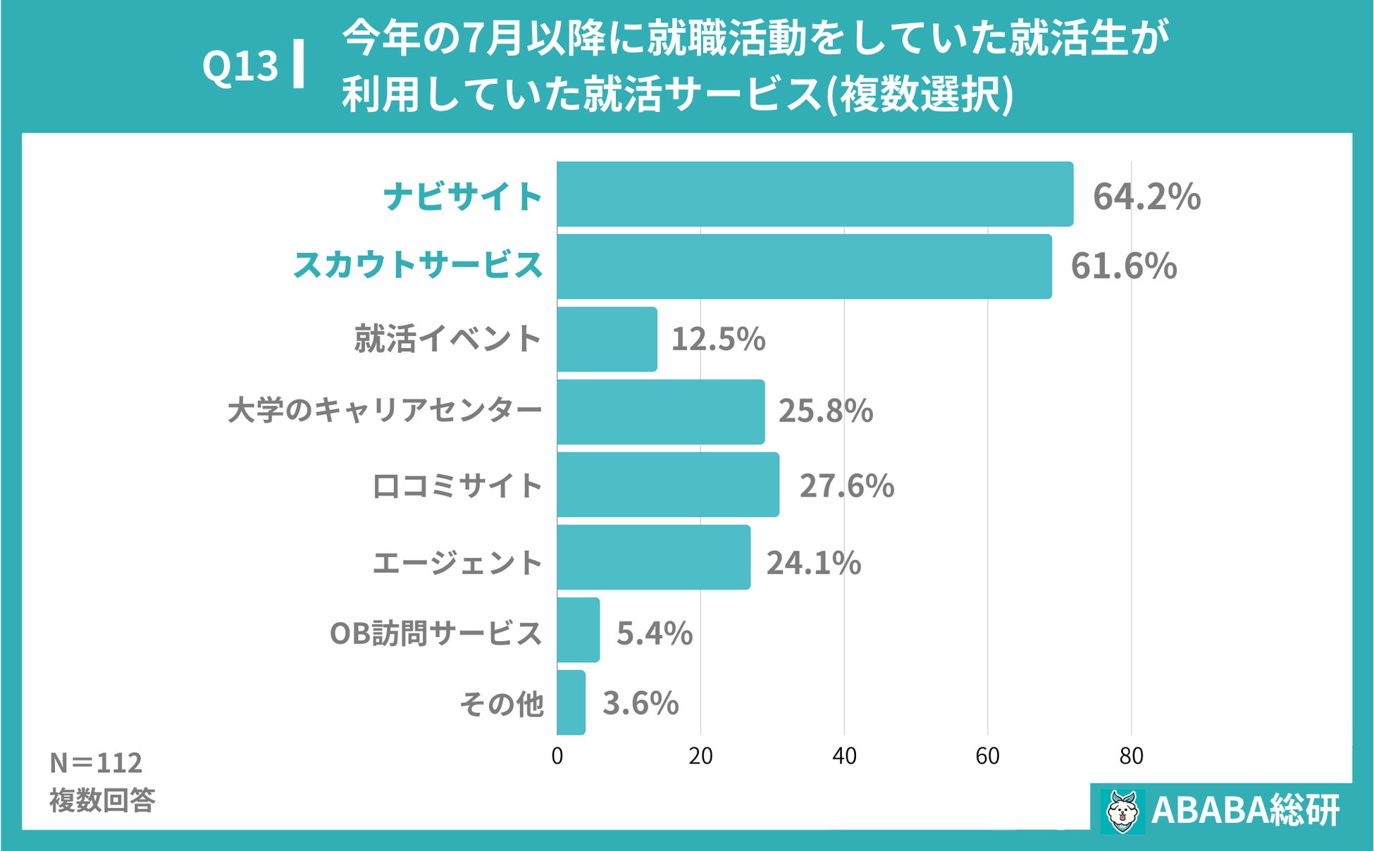 質問:今年の7月以降に利用していた就活サービスを教えてください(複数選択)