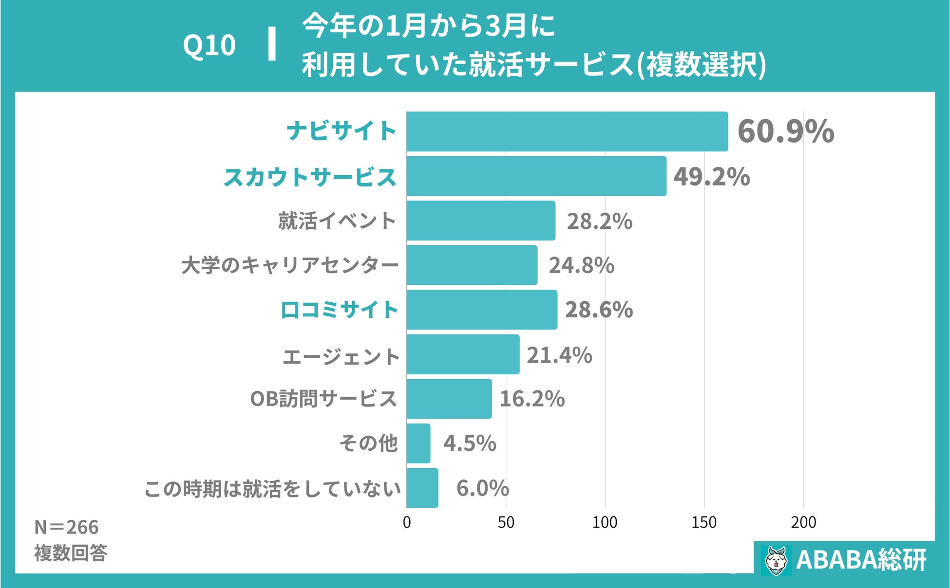 質問:今年の1月から3月に利用していた就活サービスを教えてください(複数選択)