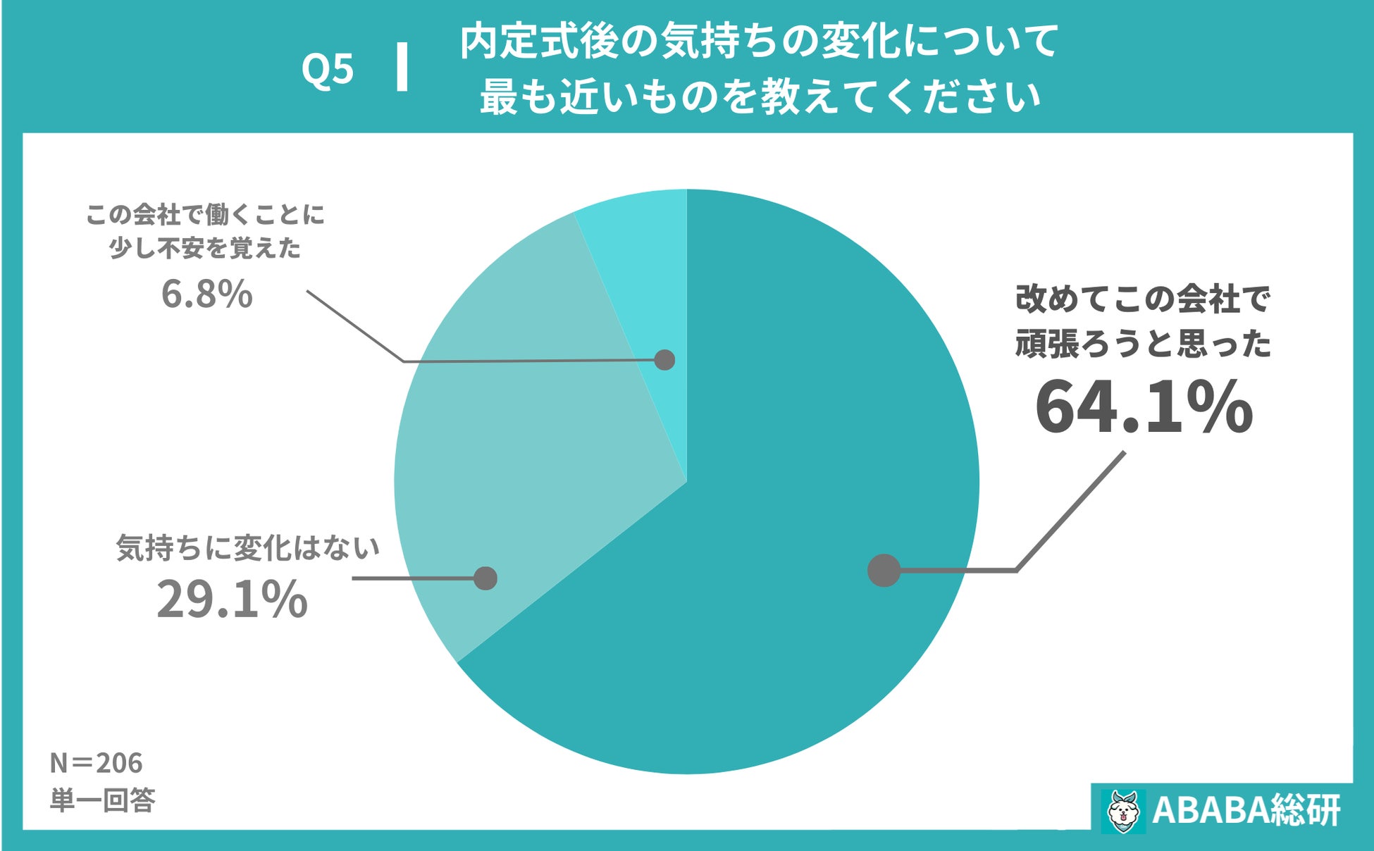 質問:内定式後の気持ちの変化について最も近いものを教えてください
