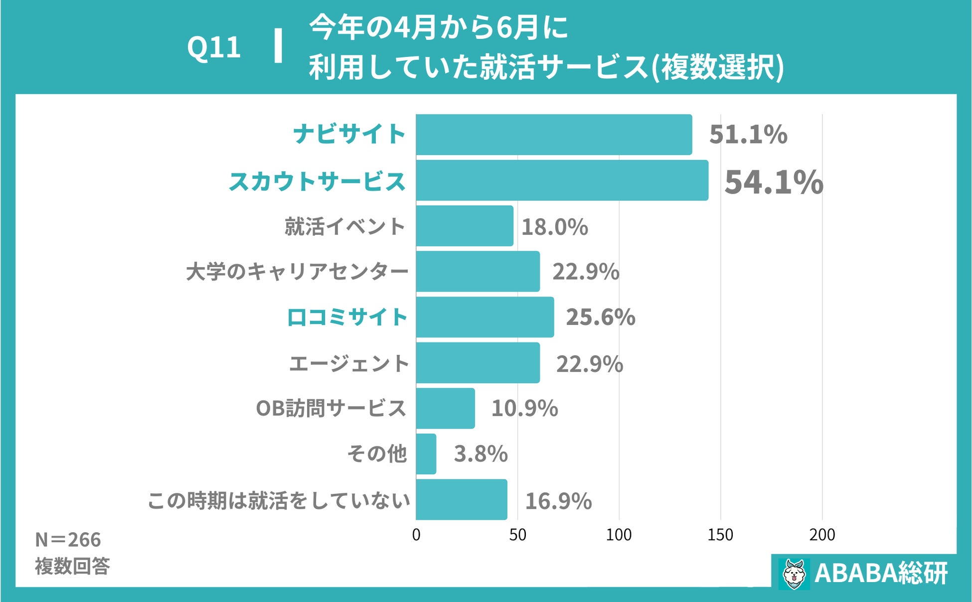 質問:今年の4月から6月に利用していた就活サービスを教えてください(複数選択)