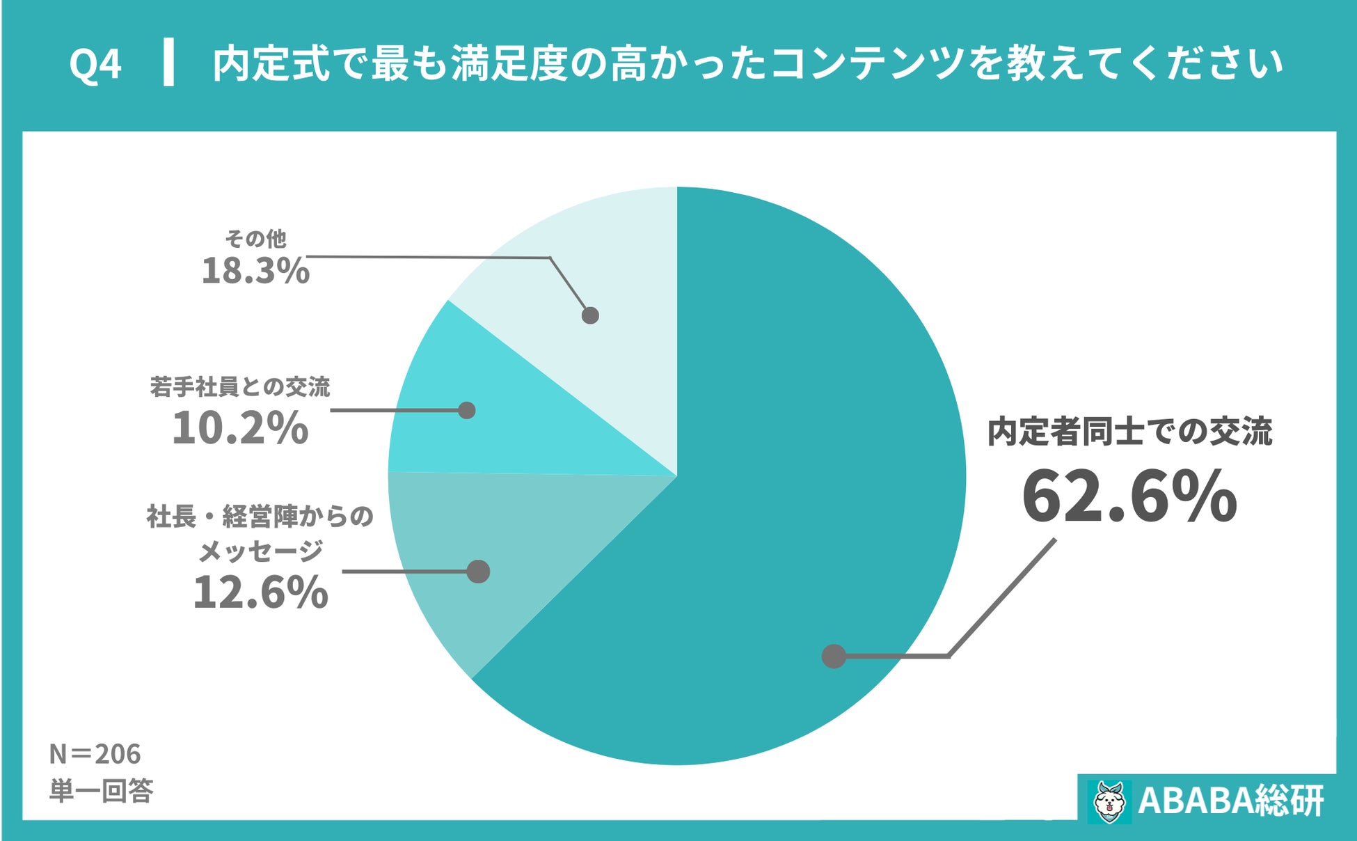 質問:内定式で最も満足度が高かったコンテンツを教えてください