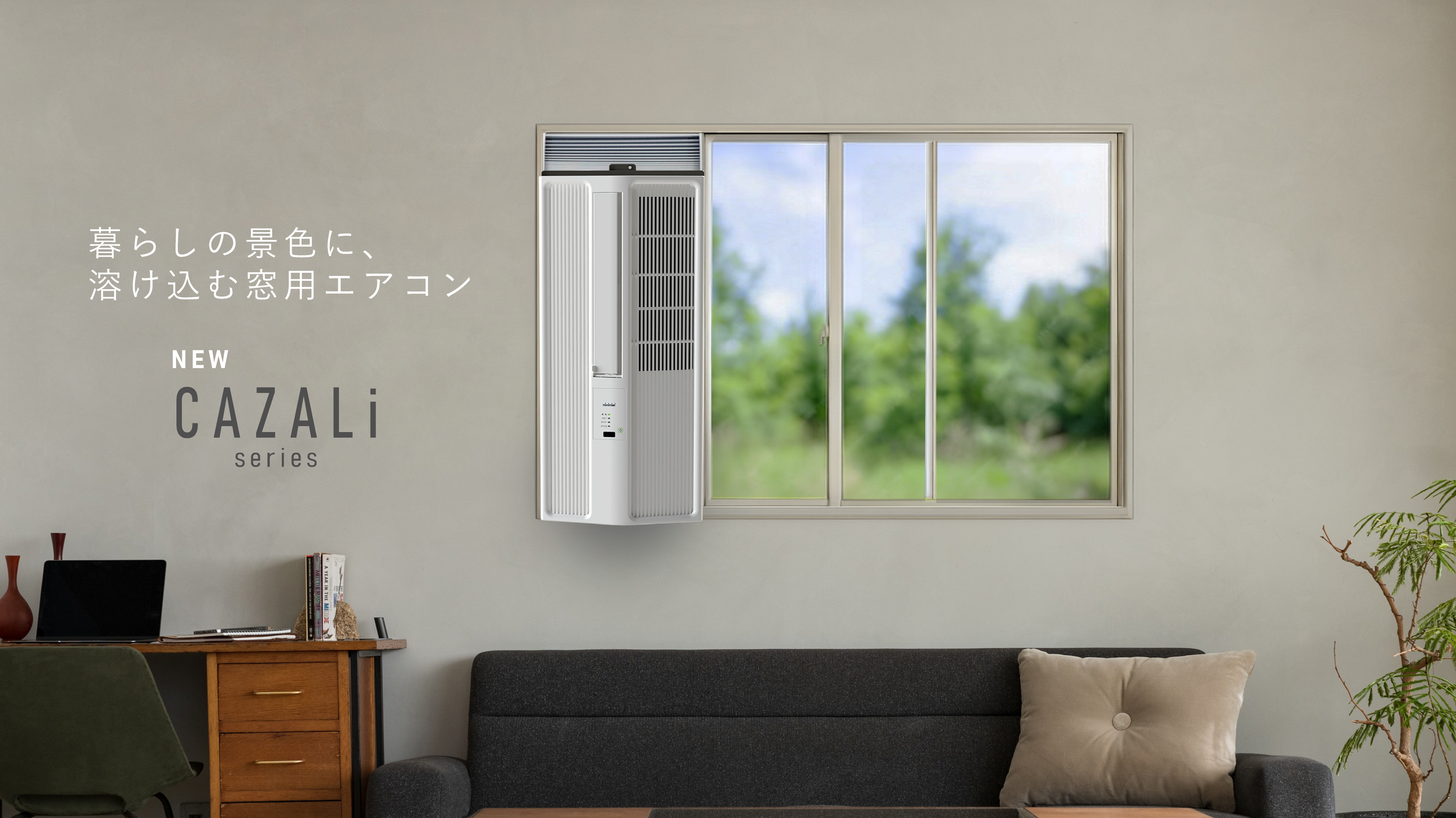 CAZALiシリーズは、窓辺にすっきりと収まり、現代の住空間に自然と馴染むデザインを目指しました。主張しすぎず、それでいて心地よい存在感で、どんなインテリアにもやさしく調和。涼しさを届けるだけでなく、暮らしの景色まで美しく整える窓用エアコンです。
