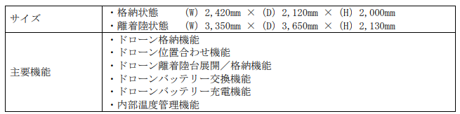 新たに開発した格納庫では、ドローンの格納・離着陸・バッテリー自動交換/自動充電、機体のセルフチェックを全自動で行います。
