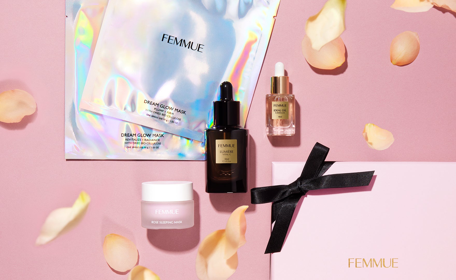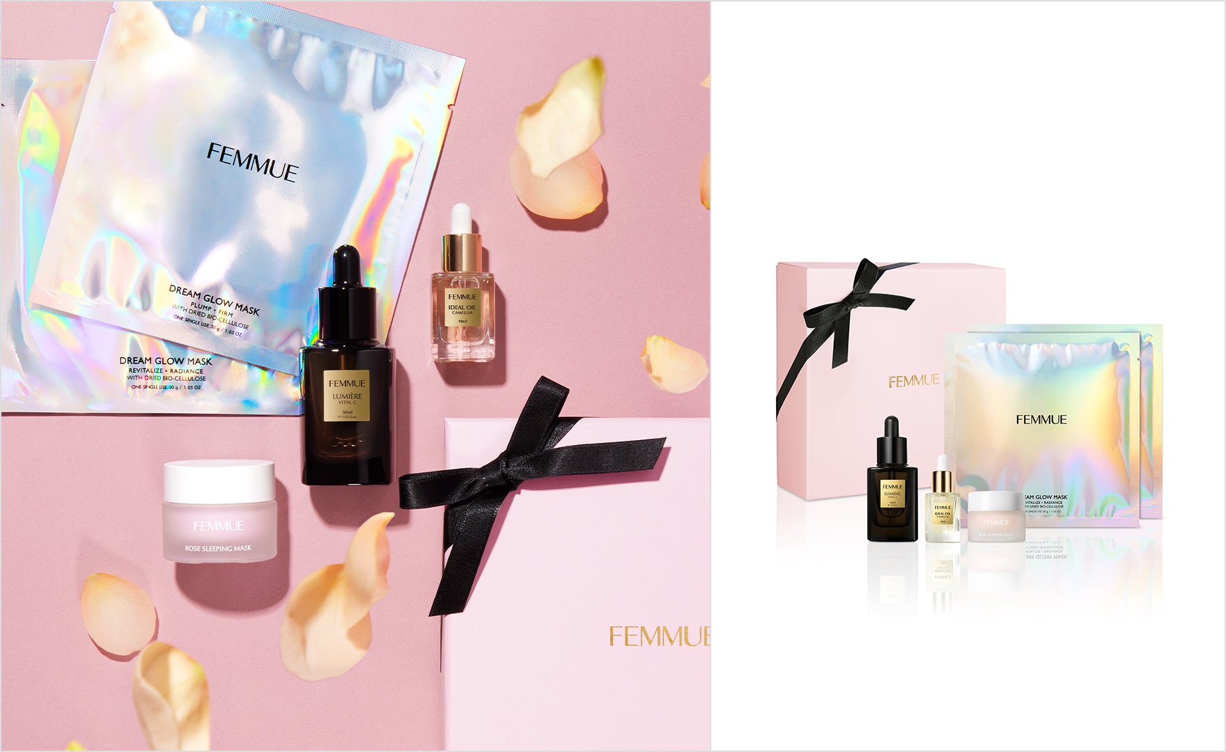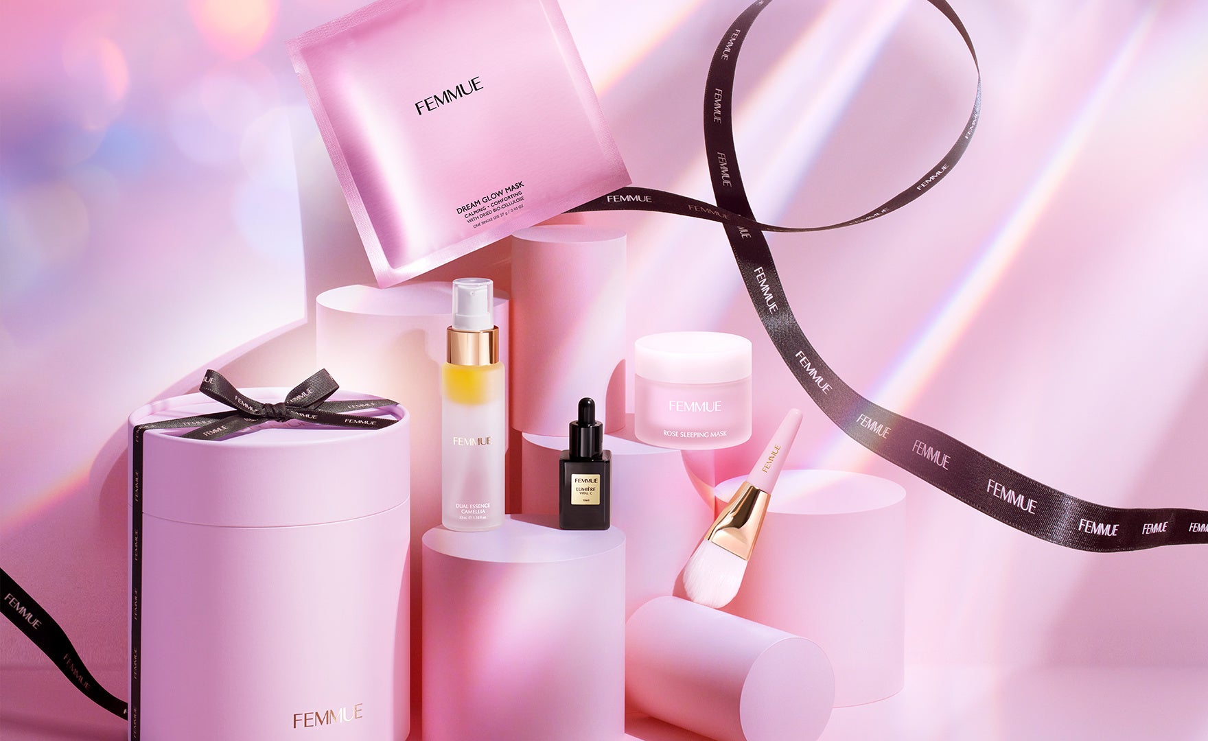 FEMMUEの世界観を堪能しながら、ベストセラーアイテムやホリデーコフレ、限定キットなどをご覧いただけます。