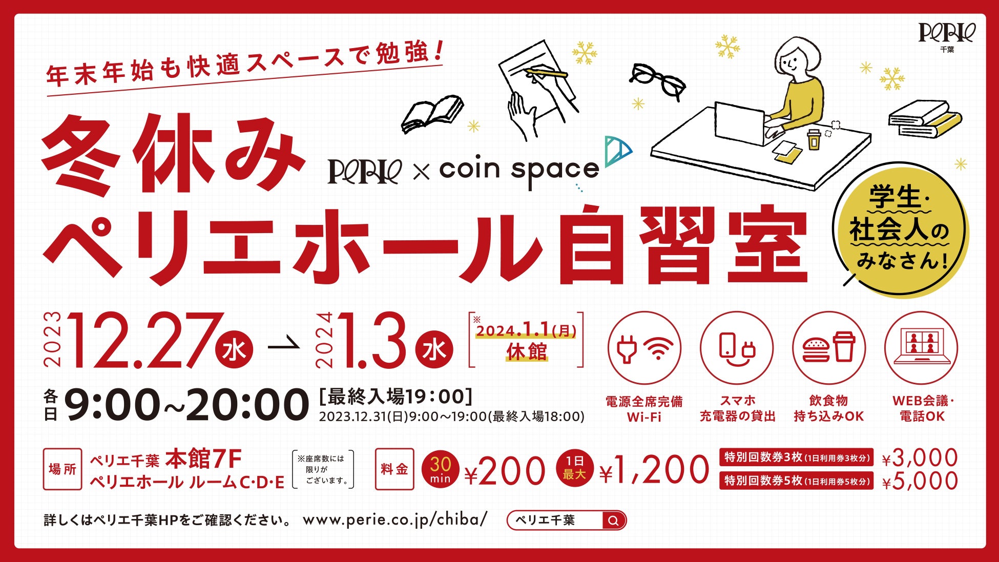【 ペリエ千葉 × coin space(コインスペース)冬休み企画】 千葉駅直結「ペリエホール自習室」を実施