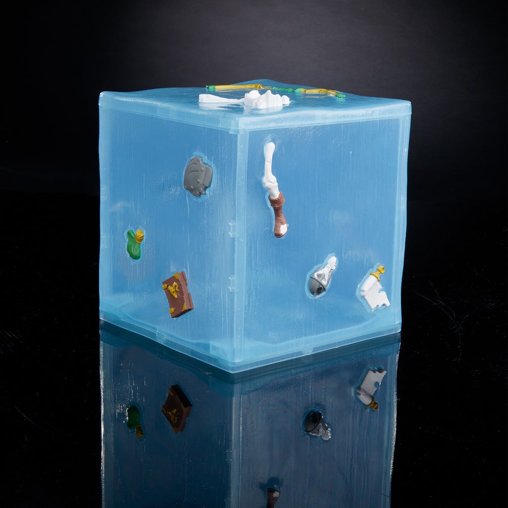 飲み込んだ生物を骨だけ残して吸収してしまうキューブ状のモンスターを、高さ約20cm×幅約19cmで立体化。6面の組み立て式で、中に6インチのアクションフィギュアが入るサイズとなっている。キューブの中にはフュギュアを固定できるストッパーが付属。別売りのフィギュアと組み合わせることで、キャラクターがゼラチナス・キューブに飲み込まれた様子をさまざまな角度から再現できる。また、キューブの表面には、消化されなかった死体や装備など、取り外しができる多様な14個のアクセサリーが付いてくる。
