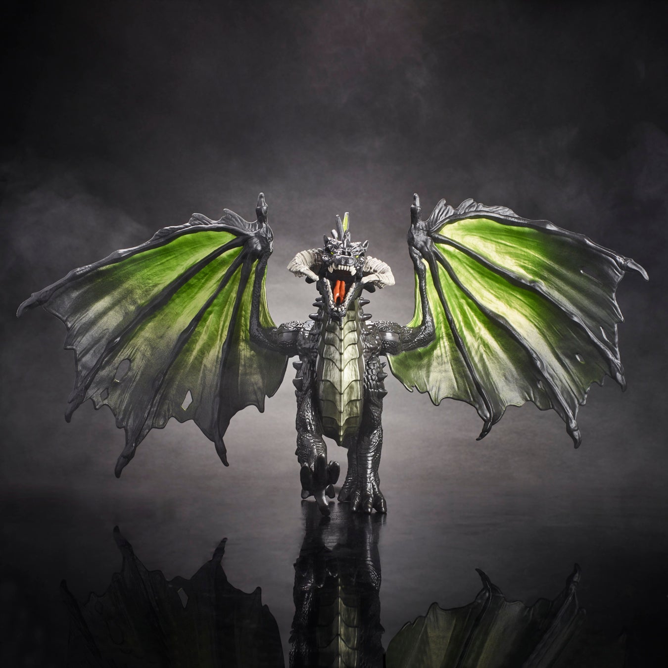 ブラックドラゴンのラコールを、全高約28cm、手足や翼、顎が可動するアクションフィギュアとして立体化。翼を広げると幅約51cmになる大迫力の仕上がりとなっている。