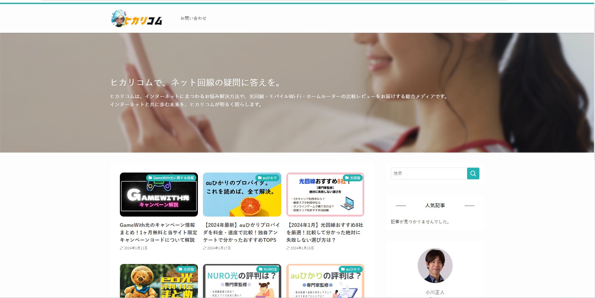 「ヒカリコム」に訪れたユーザー様が、インターネット回線を選ぶ際のお役に立てれば幸いです。