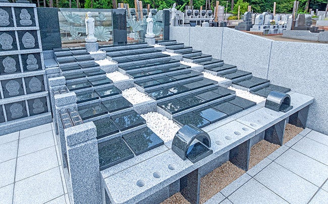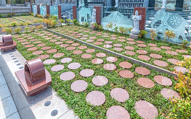 一般的な樹木葬と異なり、庭園風の明るく開放的なお墓です。墓標に樹木ではなく「石の墓誌」を使用しており、故人が眠る場所が明確にわかるようになっています。