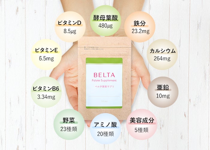 BELTAでは、妊娠中の方に出来るだけ安心した生活を送ってほしいという想いで、妊娠中の方向けの葉酸サプリ「ベルタ葉酸サプリ」に、厚生労働省が「妊娠中に摂取するべき栄養素」としている成分を推奨量配合しています。