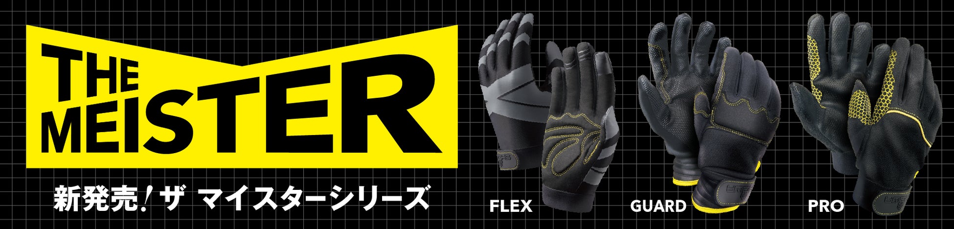 倉庫作業、建設、車両メンテナンスなどのプロフェッショナルな現場における安全性と作業効率への要求は、年々高まっています。多様化するニーズに応えるため、当社はこれまで取り扱いのなかった合成皮革手袋「THE MEISTER(ザ マイスター)」シリーズを発売することにいたしました。同シリーズは、手首部にフィット感を調整できる面ファスナーを採用。「FLEX(フレックス)」、「GUARD(ガード)」、「PRO(プロ)」の3モデルをラインナップし、繊細な作業から過酷な環境まで、幅広い現場の安全と生産性向上をサポートいたします。